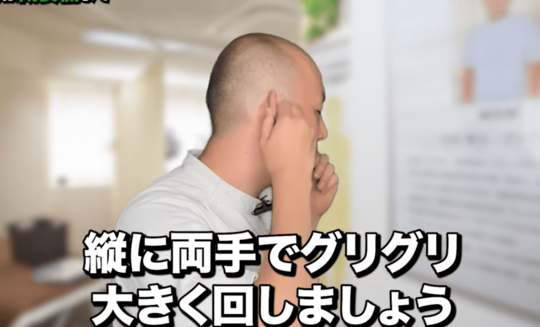 力を抜いて人差し指と親指を使って耳の軟骨を触りましょう。これを縦に大きく回してください。この時に痛いと思って行うとダメです。