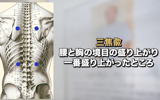 咳がひどく、息苦しい時などにも非常に効果的です。肺兪は、肺の調子が悪い時に触ると硬くを感じます。