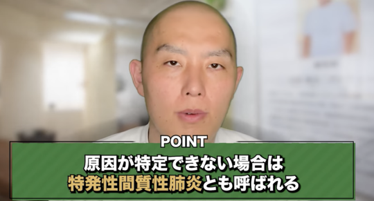 原因が特定できない場合もあり、この場合特発性間質性肺炎と呼ばれます。