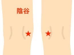 陰谷は、膝を曲げた時、内側にできるシワの先端にあります。