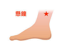 懸鐘は、外くるぶしから四横指上の腓骨の前端にあります。