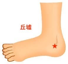 丘墟は、足関節の痛みや腰痛、坐骨神経痛、股関節や膝や足首の痛み、こむら返りや胸の痛み、胃の痛みなどに効果があるツボです。そのため、三角骨障害によって現れる痛みにも役立つのです。