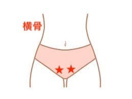 横骨は、おへそから指4本分下に下り、そこから左右に5mm程のところにある大赫から指1本分下の場所にあります。