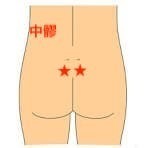 中髎は、おしりの割れ目のあたりにある仙骨の下のほうにあります。