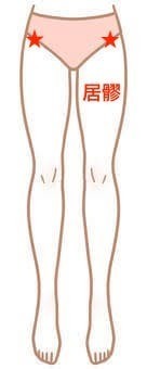 居髎は、股関節のまわりの痛みやゆがみに直接働きかけるツボです。そのため、下腿外旋症候群の改善に役立つことが期待できます。