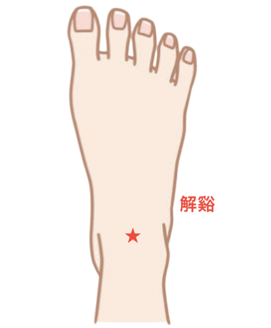 解谿は、足首の前側にあります。探すときは、足首を曲げ、シワのちょうど真ん中あたりを探します。