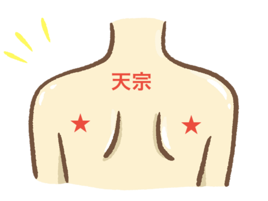 天宗の効果は、肩や背中の筋肉を和らげることです。 特に背中から腕にかけてだるさや痛みがある場合の肩こりに対して効果的です。