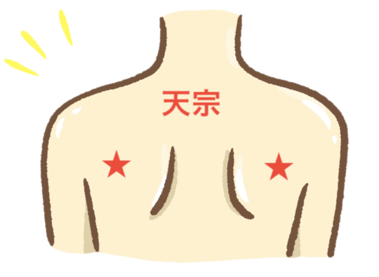 天宗の場所は、肩甲骨の真ん中のくぼんでいる場所です。