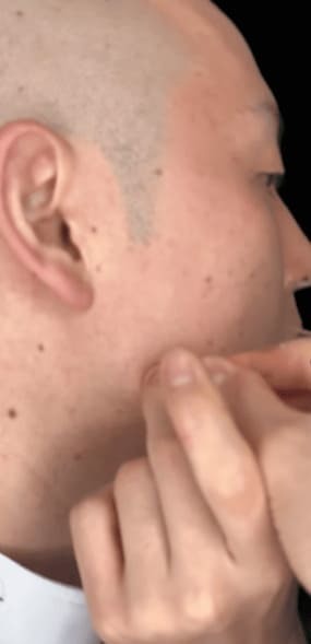 口が開かない顎関節症に対する鍼灸では、外側翼突筋、小頬骨筋、大頬骨筋、咬筋に1cm鍼を入れます。効かせるポイントは筋肉の中の袋を狙うことです。