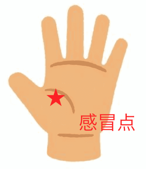 感冒点は手のひら側の親指と人差し指のつけ根にあるツボです。合谷と相対する位置にあるツボなのです。