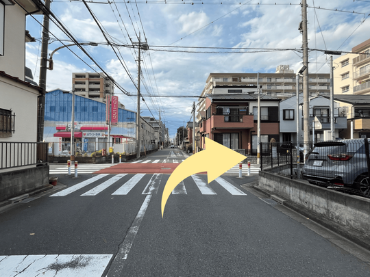 途中ファミリーマートが右手に見えるので、更に進み、公園を過ぎたら最後の交差点を渡ります。