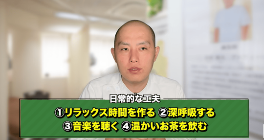 日常的にできる工夫は、リラックス時間を作る、深呼吸する、音楽を聴く、温かいお茶を飲むなどです。簡単なことに思えますが、自律神経を整えてくれる方法です。