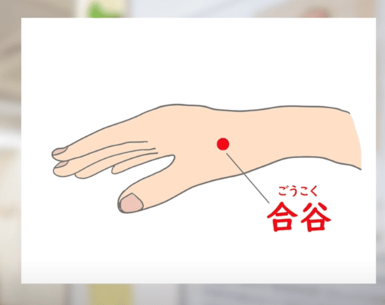 合谷は手の甲にあるツボです。親指と人差し指を握って盛り上がった部分にあります。