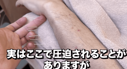 尺骨神経は尺側手根屈筋の間を通っているためそこを狙っていきます。尺骨神経沿いを狙っていくのです。ギヨン管で圧迫されることもありますがIさんはここの圧迫はなかったため尺骨神経と肩周りのアプローチを行いました。