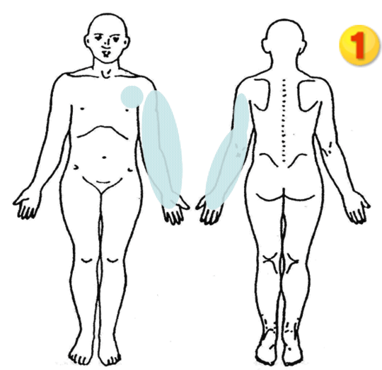 広い意味での頸肩腕症候群は首から肩・腕・背中にかけての痛み・しびれ感を訴える方、なにかしら症状をかんじる方はすべての頚肩腕症候群にあてはまります。