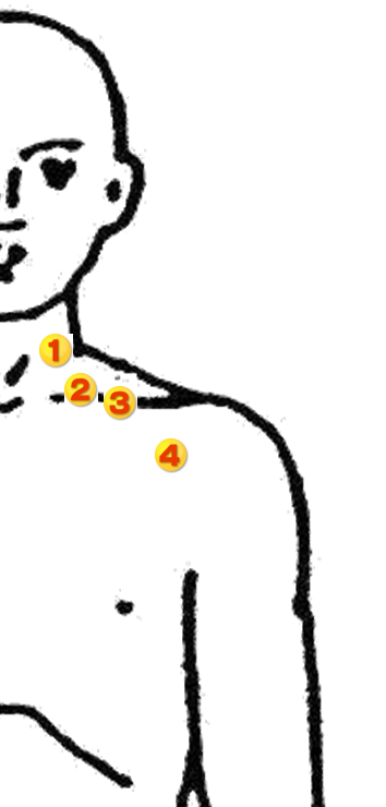 施術でよく使うツボをご紹介致します。このツボを10秒間指圧し続けてみると首と胸の筋肉が一時的に弛緩しますのでお試しください。